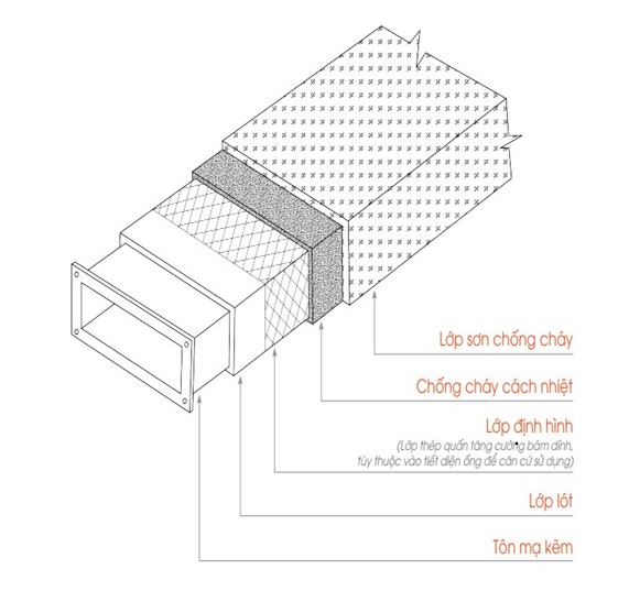Theo quy định mới nhất QCVN 06:2020/BXD của quy chuẩn quốc gia về an toàn cháy nổ cho nhà và công trình, các ống gió và thiết bị của hệ thống thông gió phải làm được làm từ vật liệu không cháy, có giới hạn chịu lửa lớn, phù hợp với các tiêu chuẩn chống cháy liên quan. Vật liệu thiết kế các ống gió và giới hạn chịu lửa của đường ống thông gió được quy định tại điều 5.12 TCVN 5687:2010 “Thông gió – Điều hòa không khí – Tiêu chuẩn thiết kế” tùy thuộc vào vị trí lắp đặt.